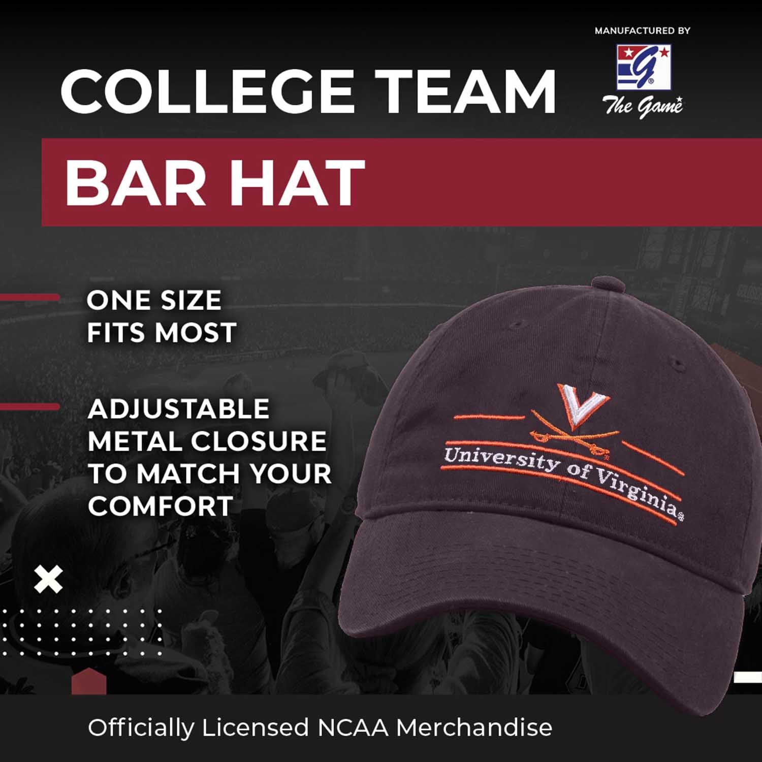 Looking for a way to support your team? Try this Virginia Cavaliers game bar hat! These Virginia Cavaliers caps are made from 100% garment-washed cotton twill. This Virginia hat also features a relaxed and unstructured design, making it a perfect Virginia Cavaliers fitted Cavaliers hat. It boldly displays the Virginia Cavaliers embroidered logo so you can represent the Virginia. In addition, the Virginia Cavaliers logo with the school wordmark is on the front of the hat in a bar design. The team wordmark is on the back of the Cavaliers baseball cap. This gameday hat has a metal closure to ensure an adjustable size. Wear these caps for women and men along with your favorite Virginia clothes, clothing & apparel. These ball caps for men and women are the perfect Virginia Cavaliers gifts for men. Buy one for yourself, your dad, or any fan. Whether tailgating at Virginia football games or cheering from home, show your team pride by wearing your Virginia gear with your Virginia cap.
