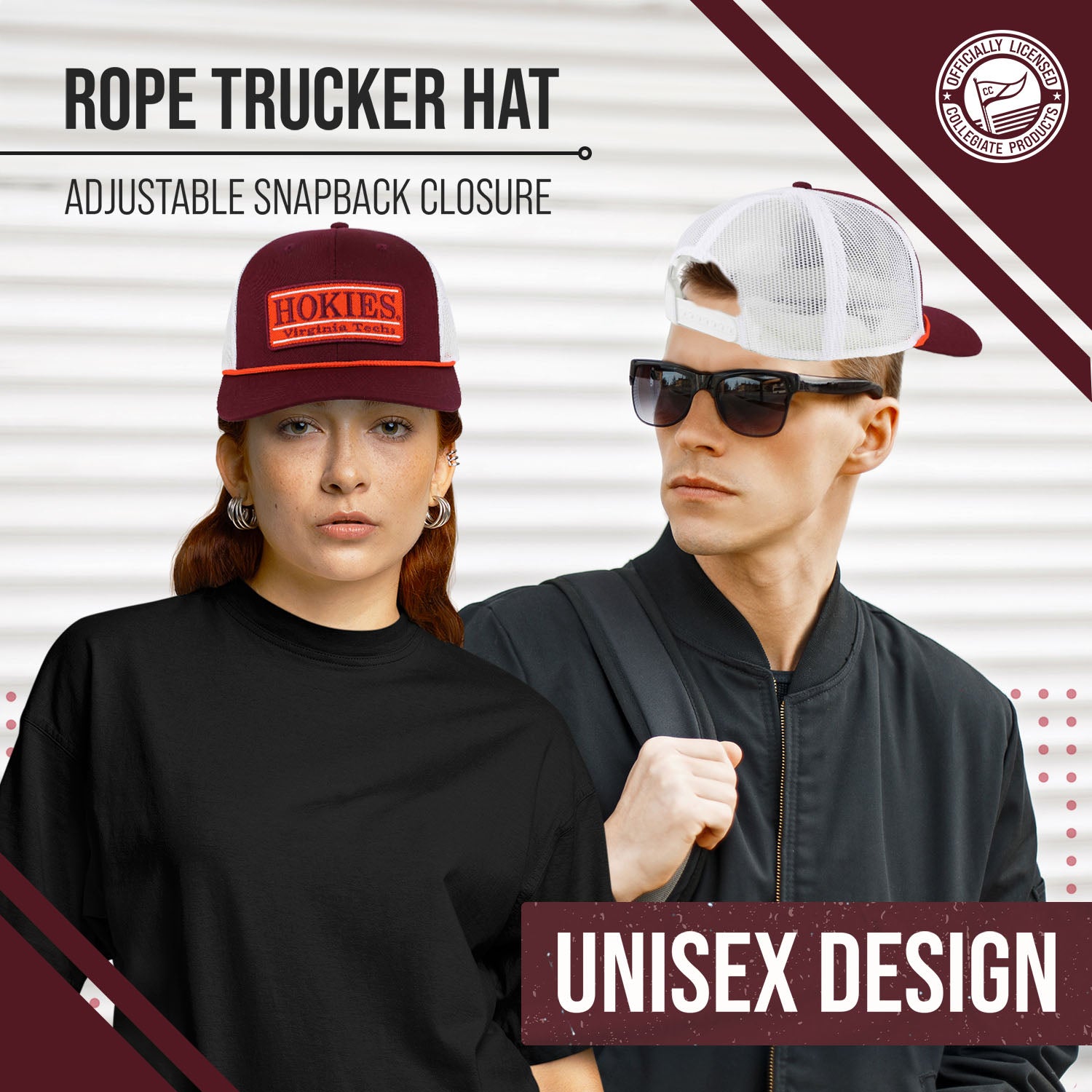 Elevate Your hat game with this Virginia Tech Hokies Elite Everyday Trucker Hat! Whether you're heading to a game, running errands, or just having a casual day out, our Hokies trucker hat is the perfect accessory. Made with soft and breathable mesh material, this cap will keep your head cool and comfortable all day long. The one size fits most and adjustable snapback closure ensures a secure and cozy fit for both men and women. But it's not just about style - our hat also features a performance sweatband that wicks away moisture to keep you dry during any activity. And with its custom embroidered patch and rope detail showcasing your favorite NCAA team, you can proudly represent them wherever you go. With its versatile design and friendly fit, our everyday trucker hat is suitable for any occasion. So why settle for ordinary hats when you can upgrade to this rope trucker hat? Grab yours now and show off your team spirit in style!