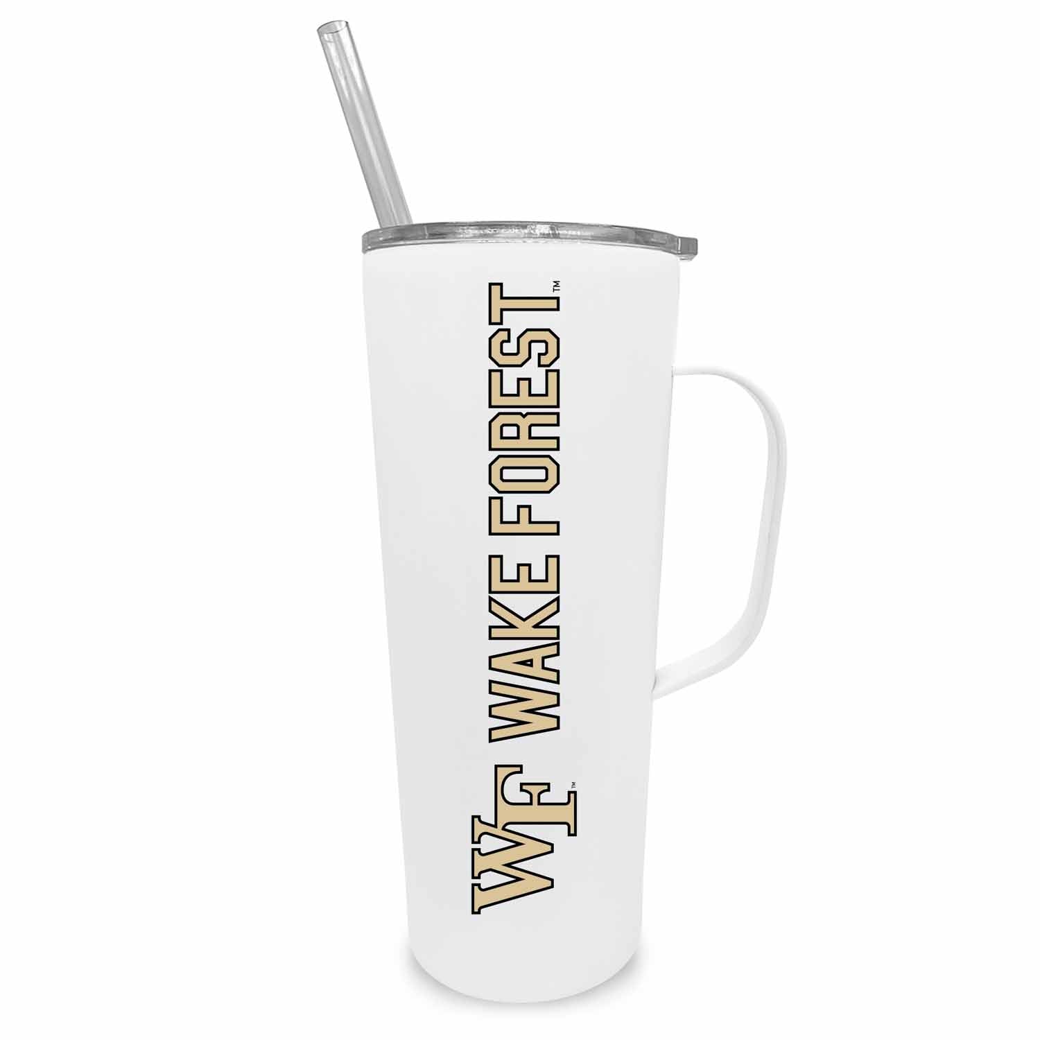 Wake Forest Demon Deacons NCAA Stainless Steel 20oz Roadie With Handle & Dual Option Lid With Straw - White