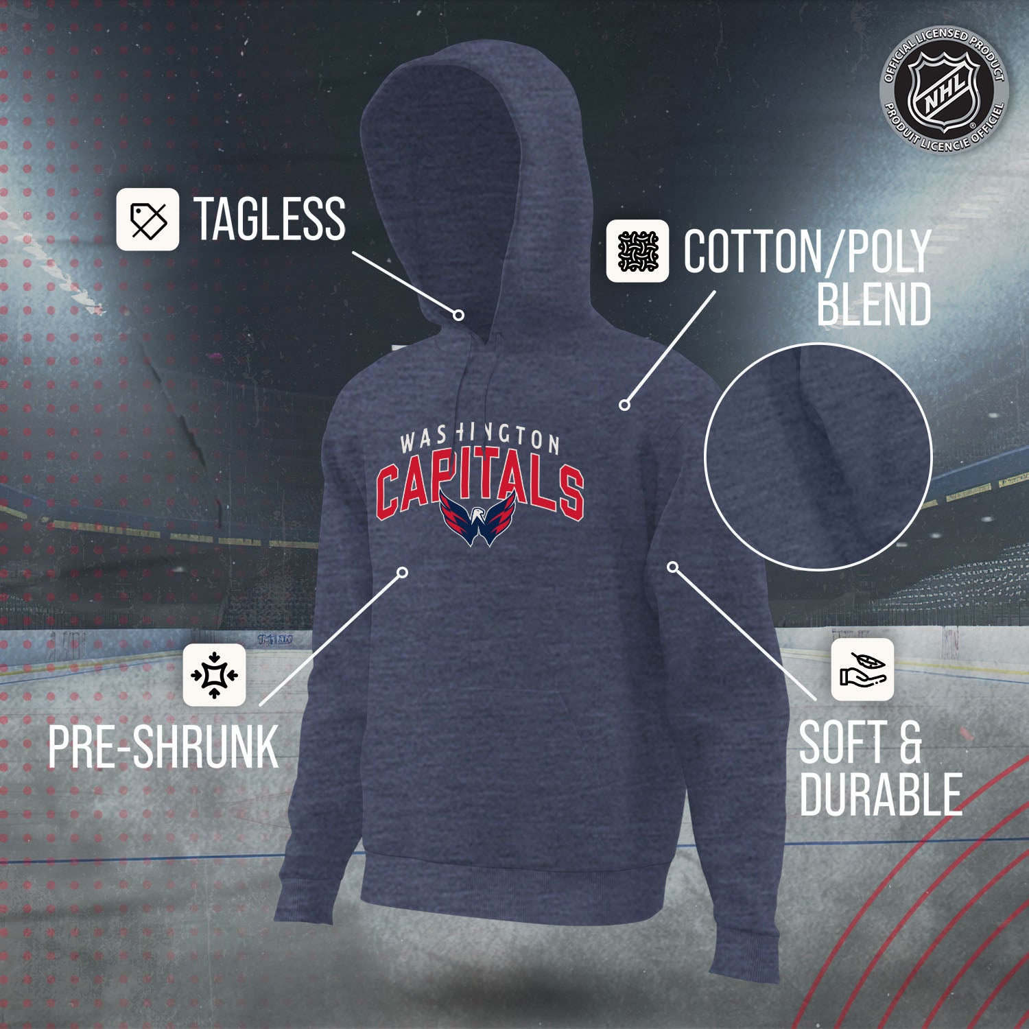 Stay warm and show off your team spirit with the NHL Washington Capitals Powerplay Hooded Sweatshirt. Available in various team colors, this 50/50 cotton poly fleece blend sweatshirt features a vintage seasoned look, drawstring hood, front pouch pocket, and screen printed graphics. Classic fit and tag-free for maximum comfort. Perfect for any hockey fan, and makes a great graduation gift, birthday gift, father's day gift, Christmas gift, and more. This premium-quality hockey hoodie fits both male and female adults and comes in small, medium, large, XL, and XXL. So needless to say, it fits Washington Capitals fans of all types! Design and printed in the USA, we use only the highest quality screen printing techniques to bring you the most comfortable, durable, and stylish clothing possible. Go ahead and show your team pride at the big game or any time!