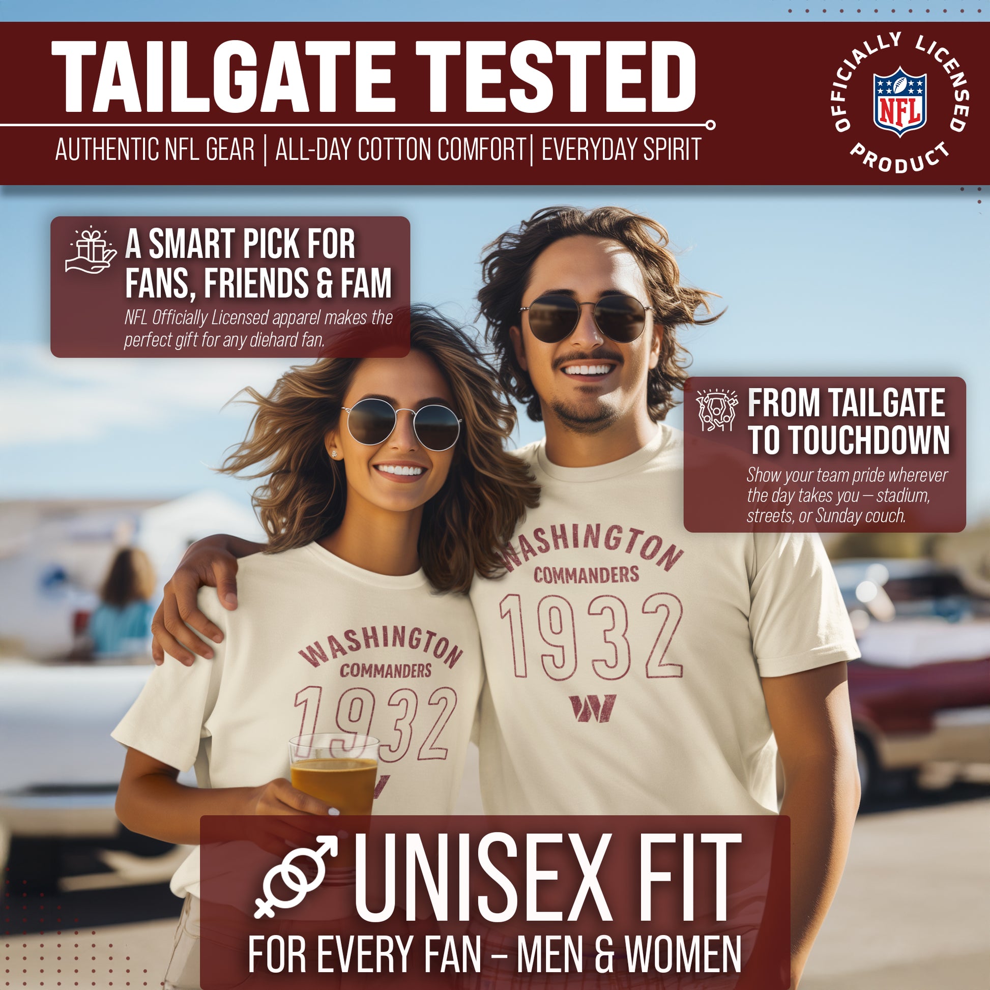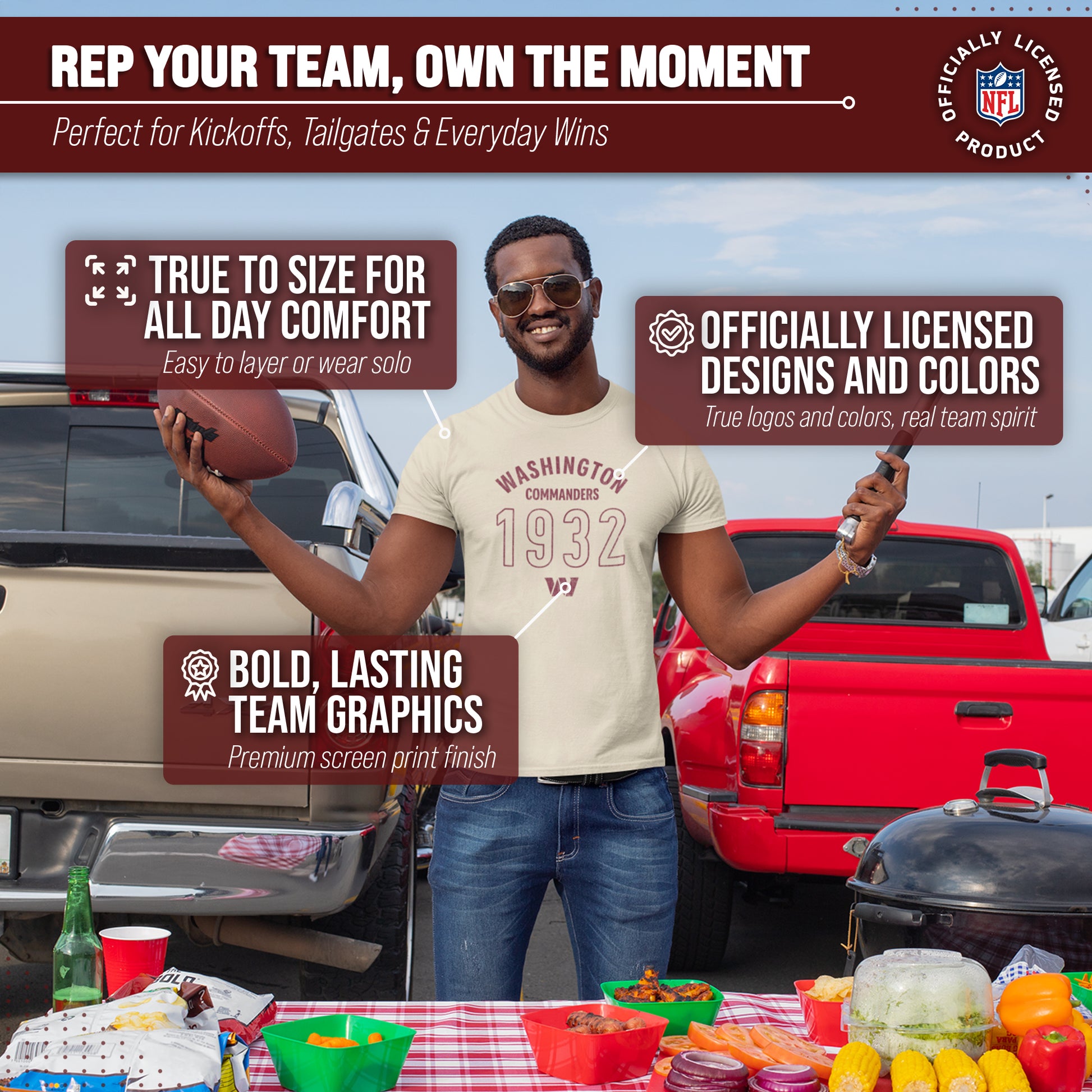 Washington Commanders NFL Adult Big Date Tag-Less T-Shirt - Natural