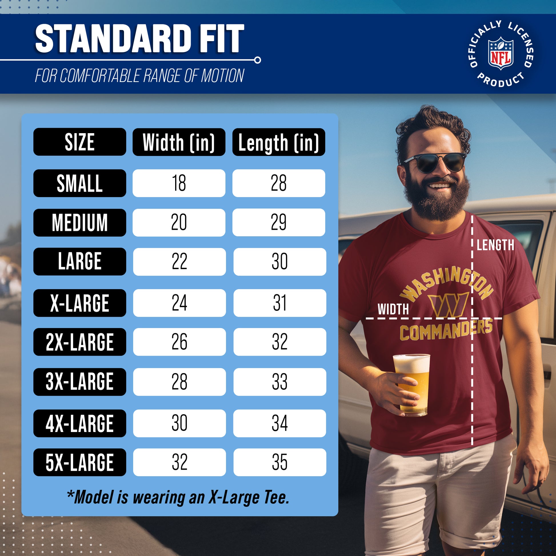 There's nothing more exciting than a much-anticipated gameday, and our Adult Gameday Washington Commanders football tshirt is the ideal shirt to wear on gameday whether you're tailgating, at the game, at the bar, or watching from the comfort of your own home. This Washington tshirt is super comfortable, runs true to size, and is great for showing team pride all year long! The semi-fitted style makes this the perfect Washington shirt for both men and women. Our Washington Commanders shirts really are the perfect fan apparel for tailgates and sports games. The Washington Commanders tshirt is lightweight and ideal for warmer weather or as an extra layer during colder months. Our Commanders shirts for men and women are essential Washington apparel for football fans. Our Gameday Adult Football shirts come in primary team color, navy or black, and in charcocal heather. Our tagless Washington Commanders t shirt ensures the most comfortable fit. This semi-fitted tshirt is made froma cotton poly blend; 3/4"" double-needle topstitched collar makes for comfortable fit around the neck and shoulders. This high quality Washington t-shirt features a double-needle sleeve and bottom hems. These are high quality Commanders graphic shirts for men and women. The graphics will stay crisp wear after wear, and year after year. The thermal printed graphics are high definition, official true team colors, and also resist fading. This Commanders tshirt is made with high stitch density for smoother printing surface. Our pro Washington Commanders tshirts for men and women make the best Commanders gifts. This piece of Washington Commanders apparel is the perfect birthday or Christmas gift for any professional sports fan. This mens tee is absolutely perfect for tailgating, stadium fun, or watching the game at home.
