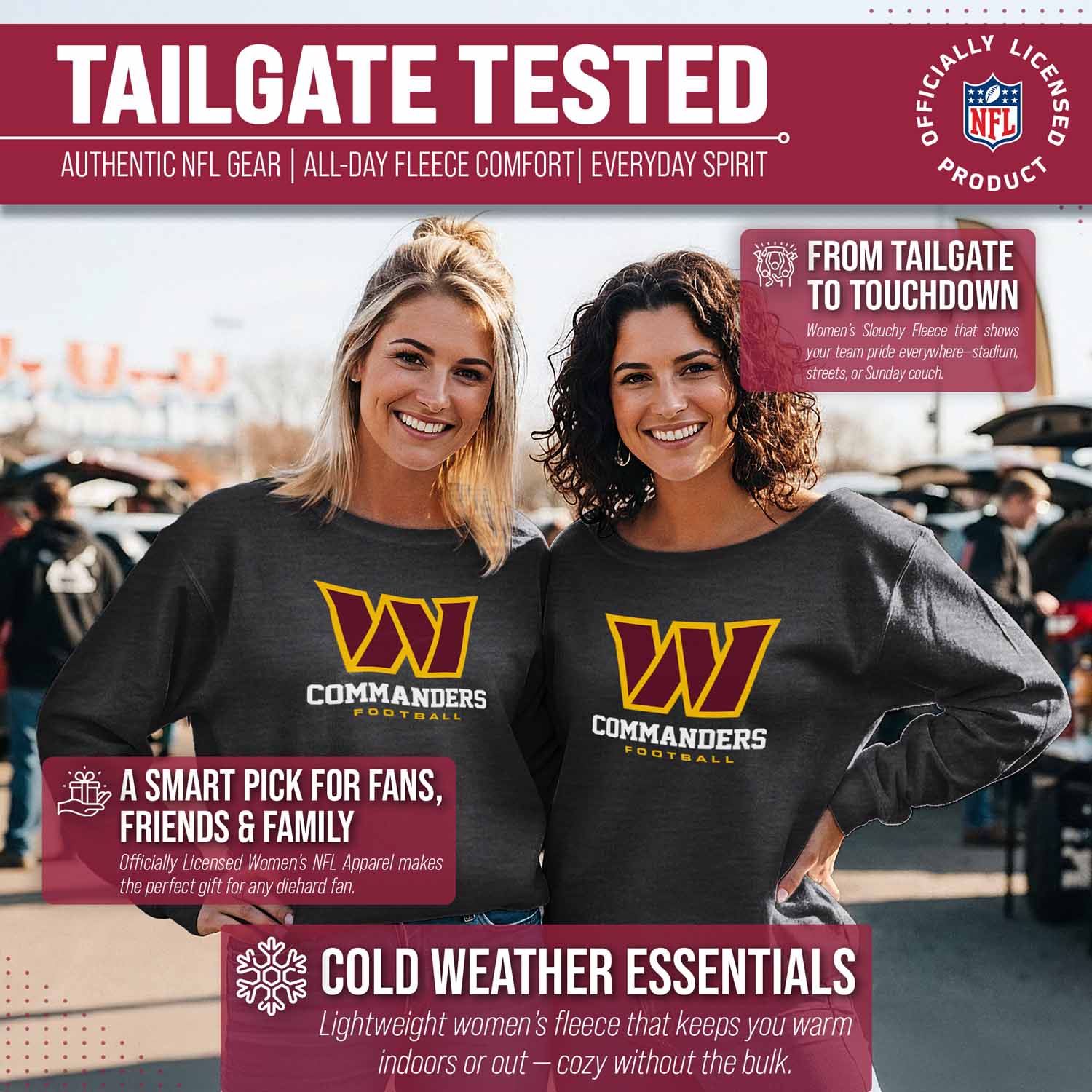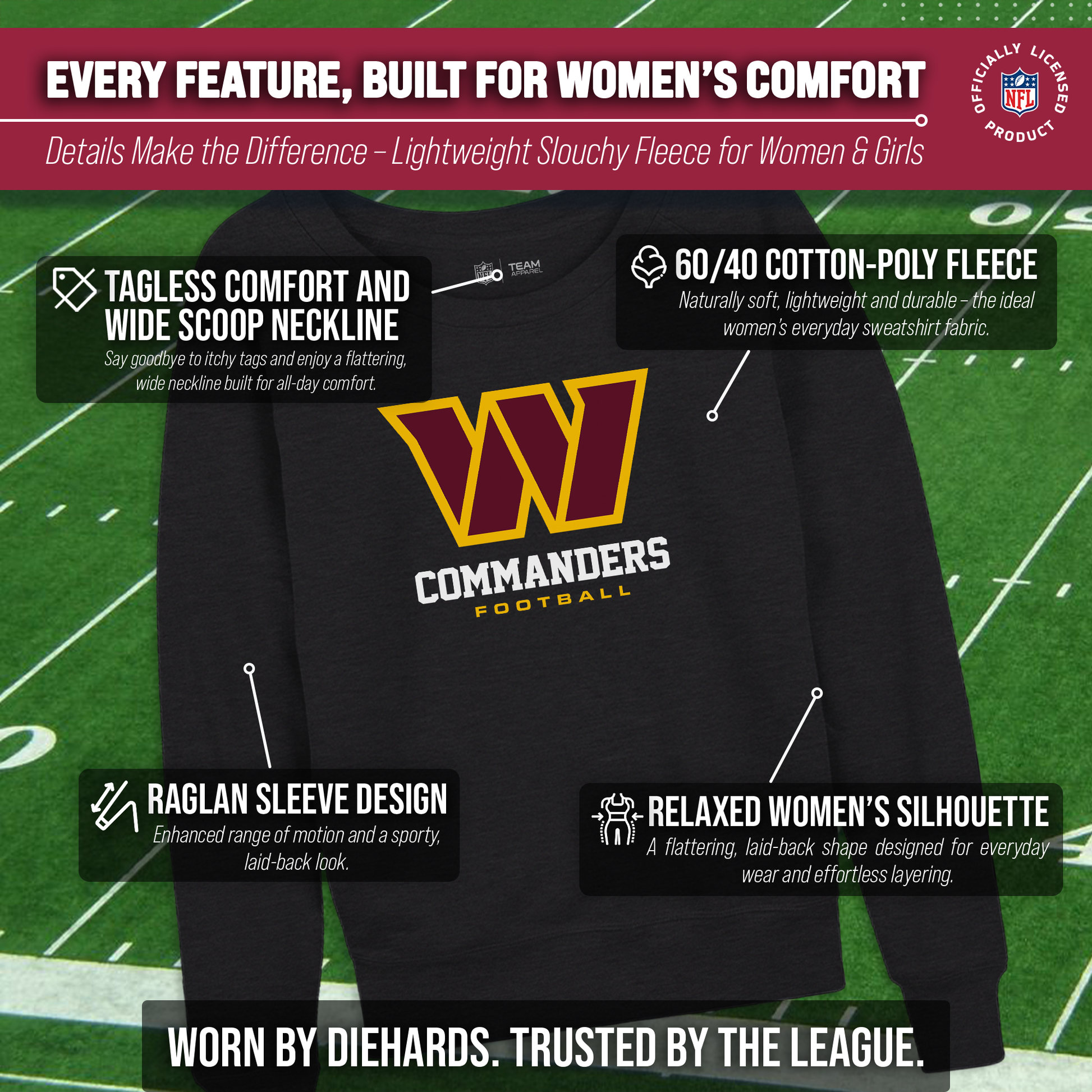 Washington Commanders Women's NFL Ultimate Fan Logo Slouchy Crewneck -Tagless Fleece Lightweight Pullover - Charcoal