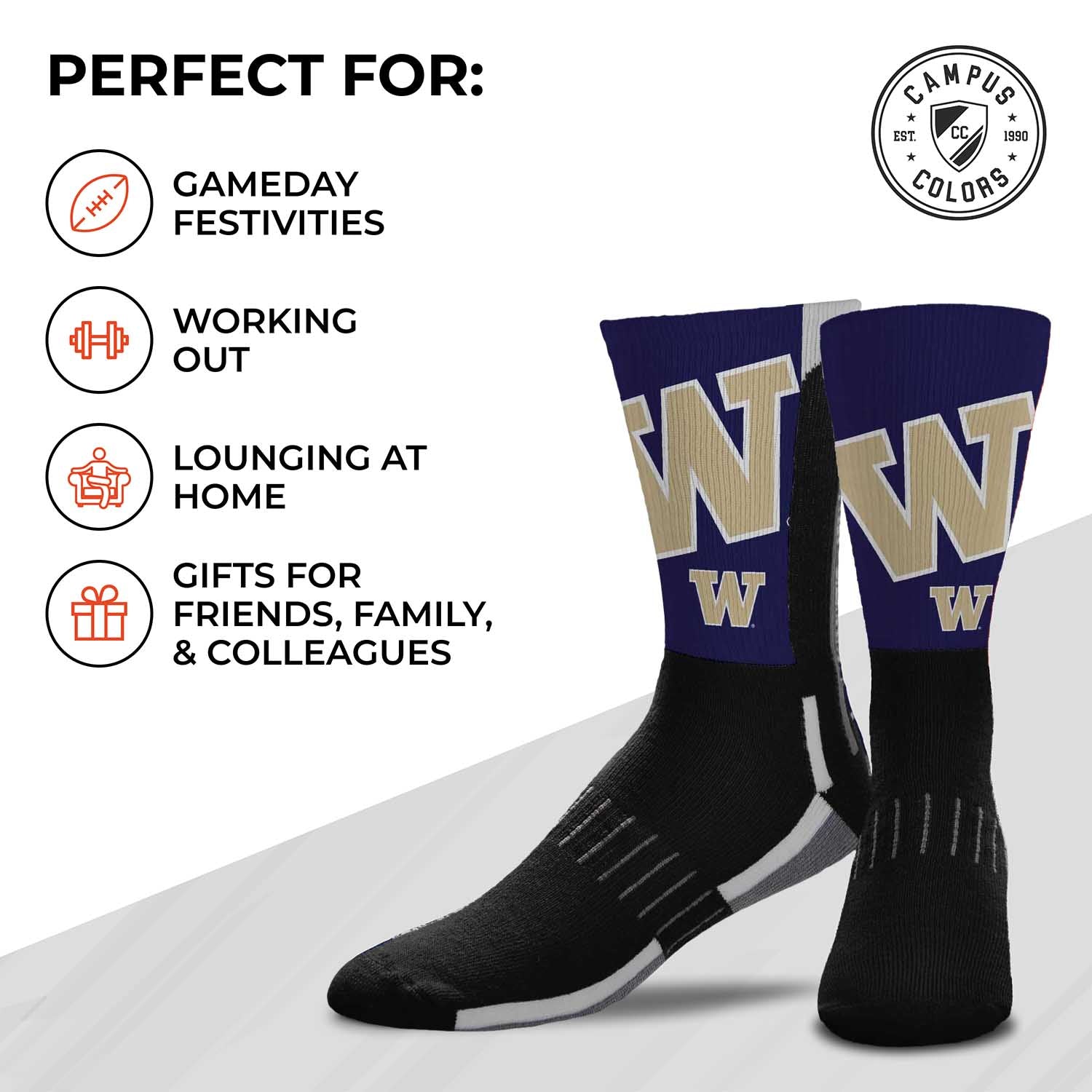 Washington Huskies NCAA Adult State and University Crew Socks - Black