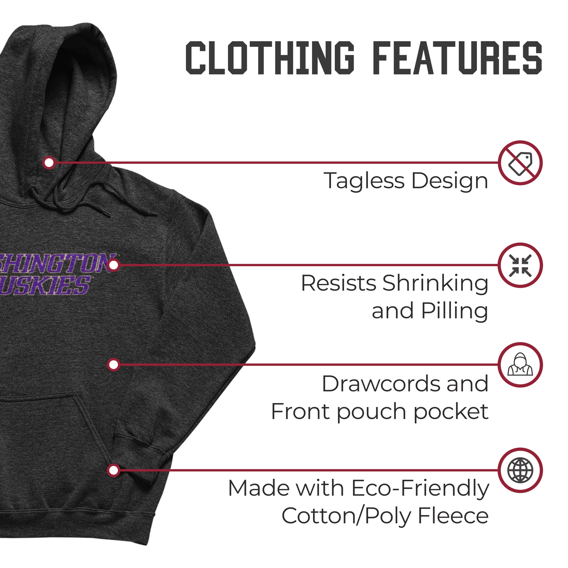 Washington Huskies NCAA Adult Cotton Blend Charcoal Hooded Sweatshirt - Charcoal