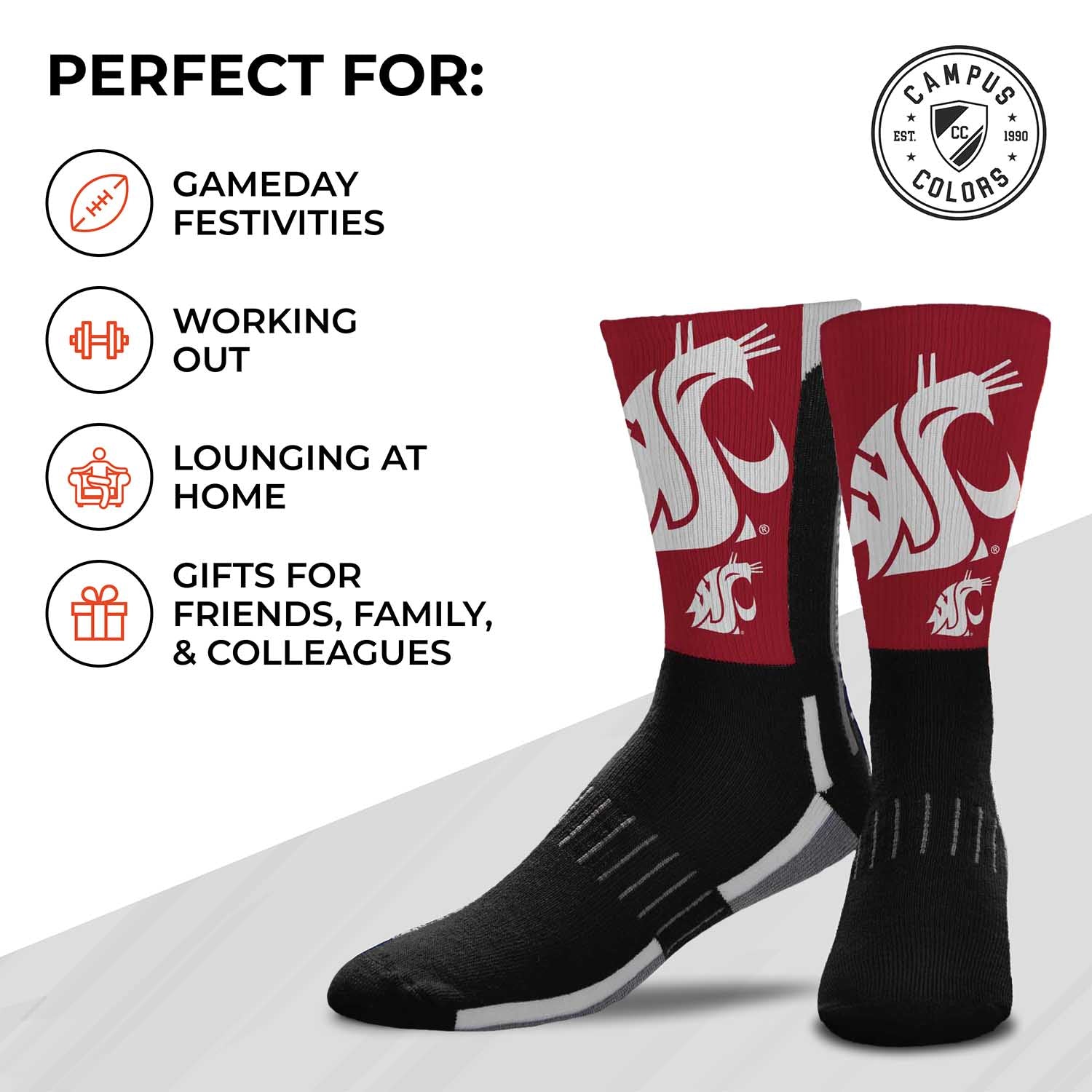 Washington State Cougars NCAA Adult State and University Crew Socks - Black
