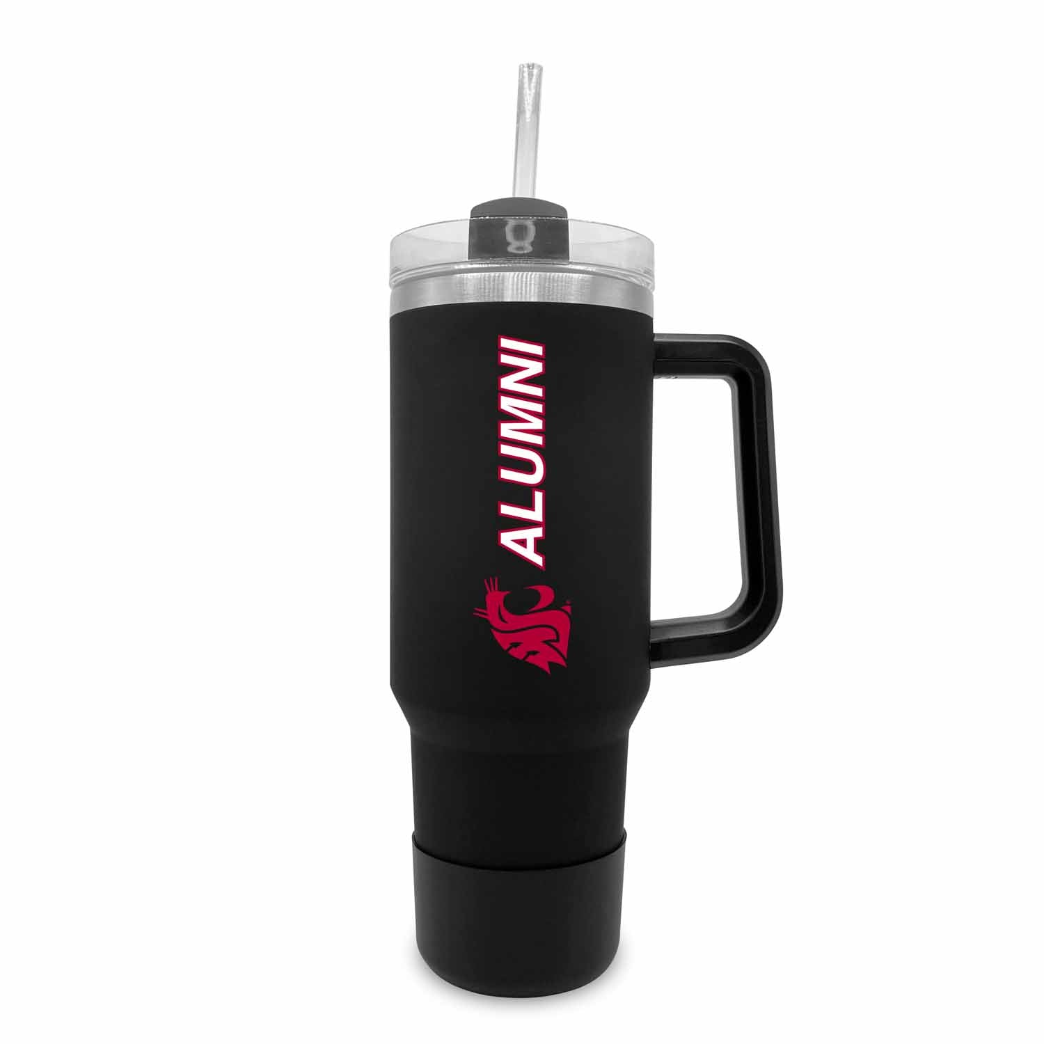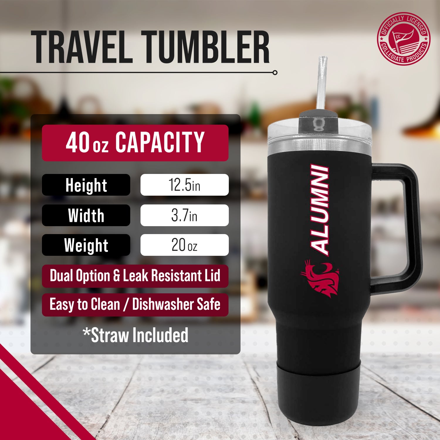 Washington State Cougars Collegiate 40oz Stainless Steel Travel Tumbler with Handle for Alumni - Black