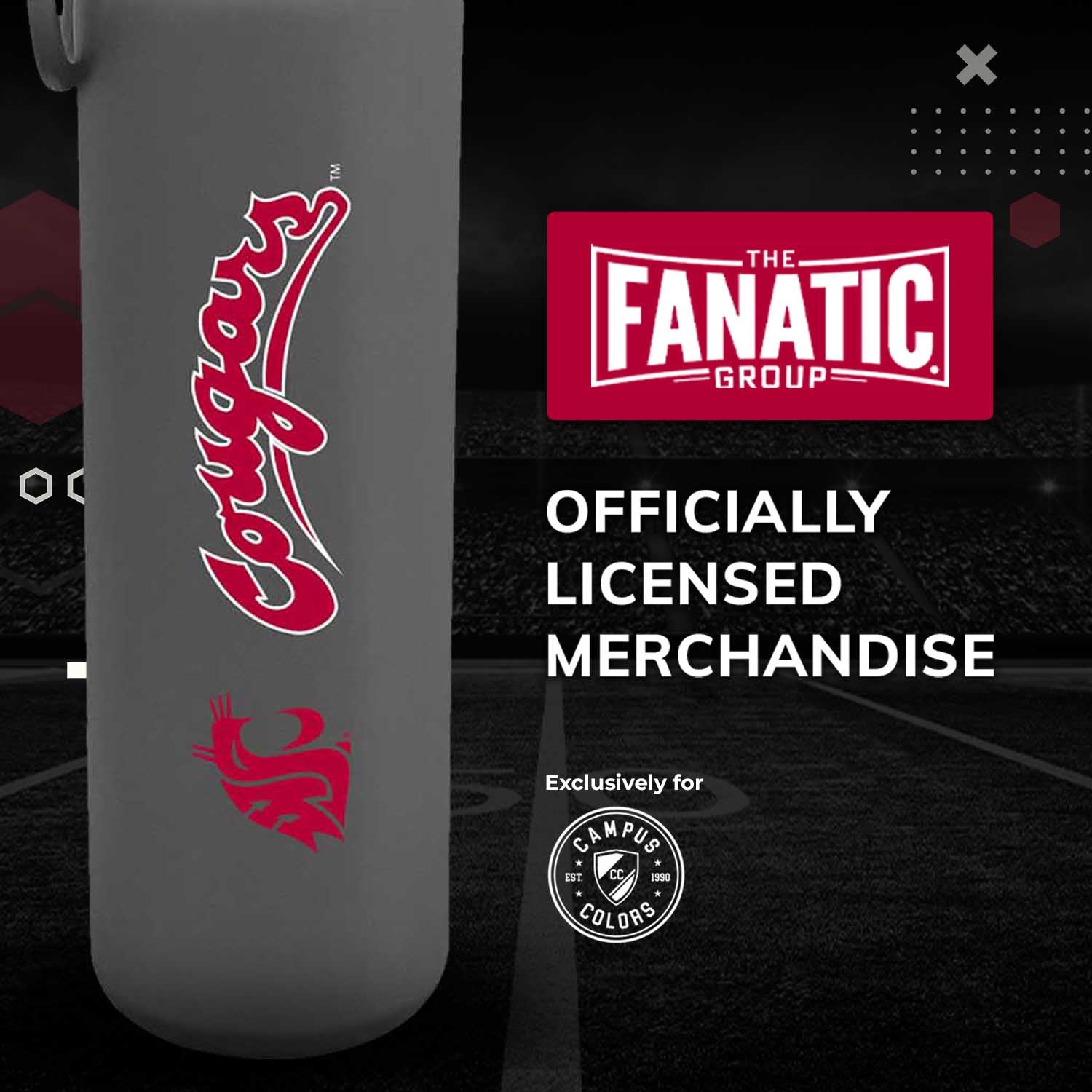 This officially licensed 24oz Washington State water bottle is the best accessory for any Washington State Cougars fan. You can use this water bottle 24 oz for water, sports drink, or even to keep your coffee hot. Our vacuum sealed sport bottle ensures that your drinks stay hot or cold for hours. You can bring this bottle along to sport games, hikes, or tailgates on game day. This sport water bottle 24 oz is a slim bottle that fits in most car cup holders for convenience. This stainless sports water bottle features an easy flow spout for the best drinking experience. The twist on cap features an easy drinking spout to make sipping a breeze. The bottle's lid twists on and off to reveal an easy drinking mouthpiece. The convenience of our double walled water bottles make them perfect for sports and everyday life! Show off your school spirit with this Washington State Cougars water bottle. This durable stainless sports water bottle make the perfect Washington State Cougars accessories for any activity. Our water bottle with clip for backpack is perfect for student campus life and busy alumni activities. Our vacuum sealed water bottles feature a built in handle. The easy grab bottle allows you to sip your water without spilling it on yourself while playing sports or walking to class. The college water bottle is coated in silicone for added grip and softer finish, and the exterior is sweat free so the Washington State water bottle won't drip on you. This insulated water bottle is the perfect birthday or Christmas gift for fans who love to collect Washington State stuff. Pair with other Washington State novelties or apparel for the ultimate Cougars gift for women and men. Washington State gear is great as birthday gifts for college students, alumni, and sport fans. With our Washington State Cougars water bottle, fans can show team pride and stay hydrated all day and every day!
