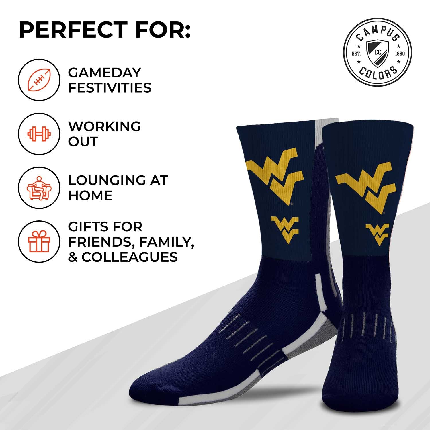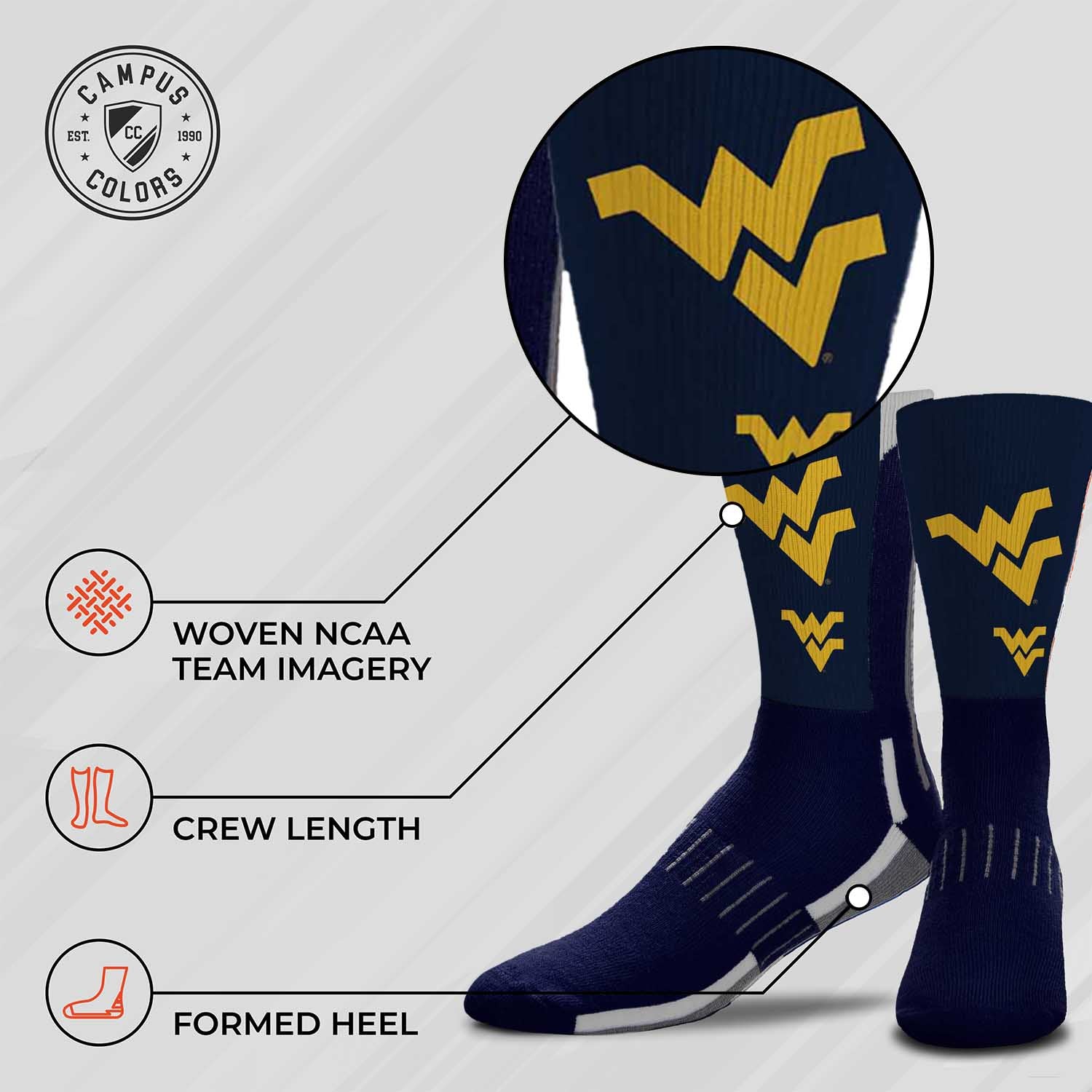 West Virginia Mountaineers NCAA Adult State and University Crew Socks - Indigo/Navy