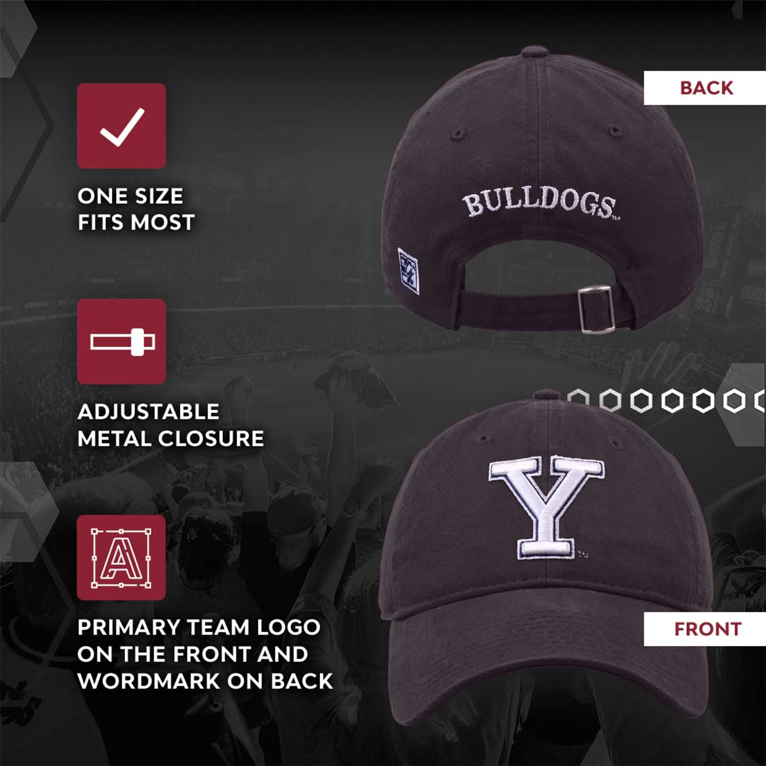 This Yale hat is a must-have for any Bulldogs fan! These college hats are made from 100% cotton and garment-washed twill, and are durable and comfortable to wear. The garment-washed fabric gives this vivid Yale hat a cool, stylish, and fashionable look. The Yale Bulldogs logo is embroidered on the front, with the team wordmark on the back. The relaxed, unstructured hat design feels soft & easy to wear, making it a good dad baseball hat for everyday wear. The adjustable metal closure ensures a one size fits all. If you are looking for the perfect Yale gift for Father's Day, look no further than the Yale Bulldogs dad hat! Wear it with the classic Yale Bulldogs apparel on game day with your Yale Bulldogs clothes and Yale Bulldogs merch, or wear it out running errands. This Yale cap is a staple in every Bulldogs fan's apparel. Show your support for Yale this baseball hat. Show your love for soccer, baseball, basketball, and hockey all year long.